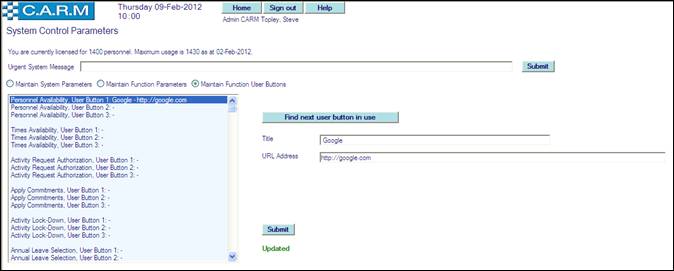 User Button will now appear on the relevant CARM User Page e.g. ![]()