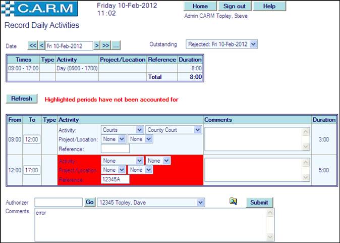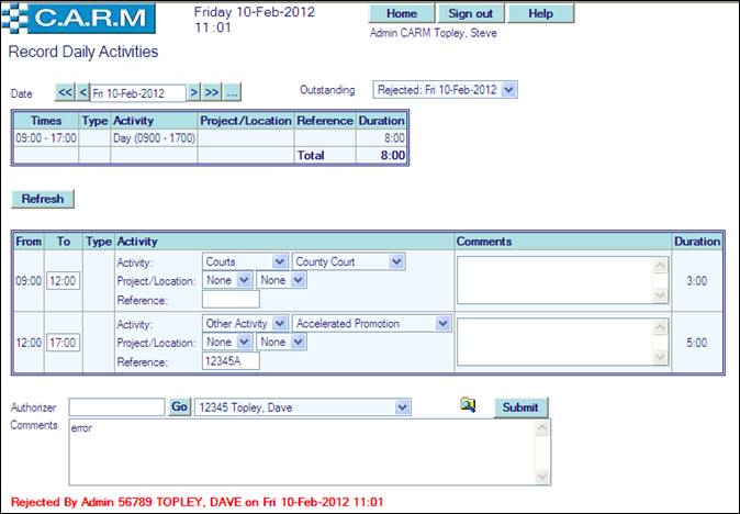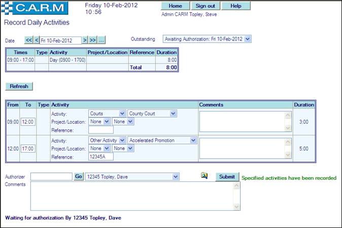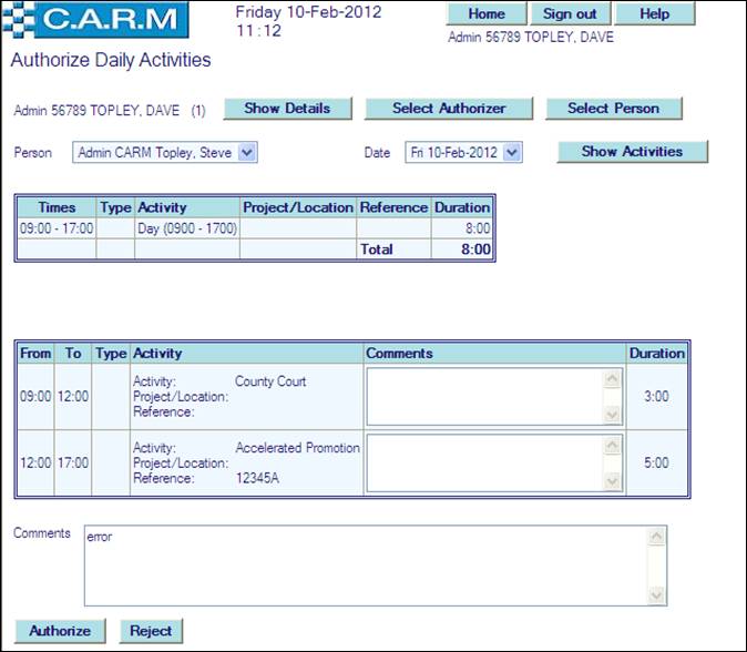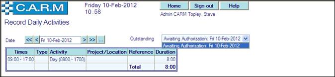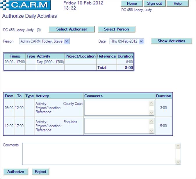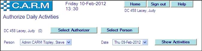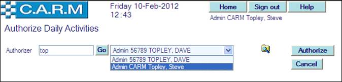 There may be occasions when an authorizer is unavailable e.g. Long term absence, on a training course etc. Then another Authorizer may View and Authorize/Reject Activity Records on their behalf.