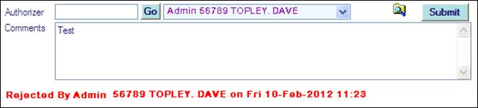 · Select Date to Authorize/Reject record for, from the drop down box.