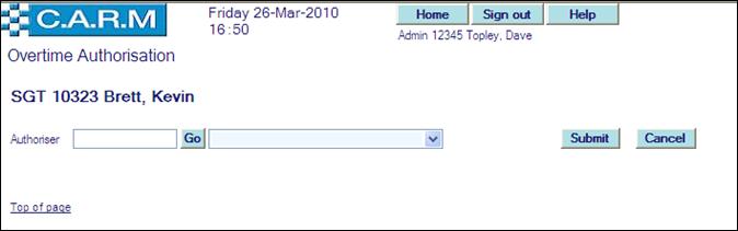 · Search for the authorizer whose Extra pay needs authorization on behalf of.