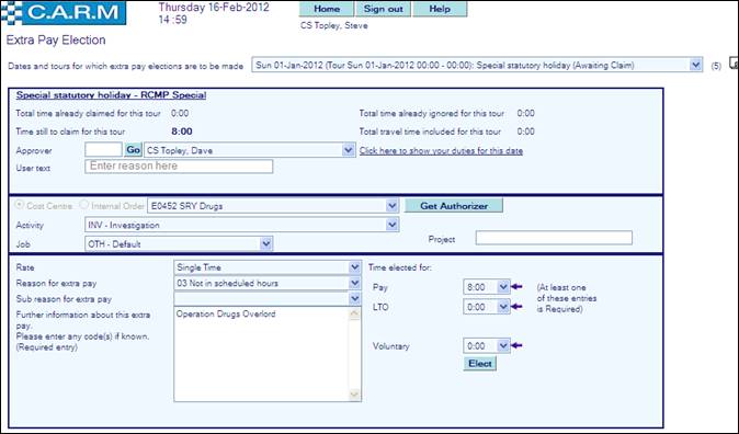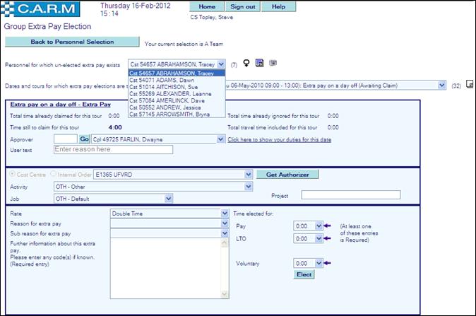· Electing for Extra pay or Lieu time off (or ignore/voluntary time).