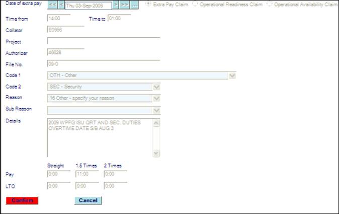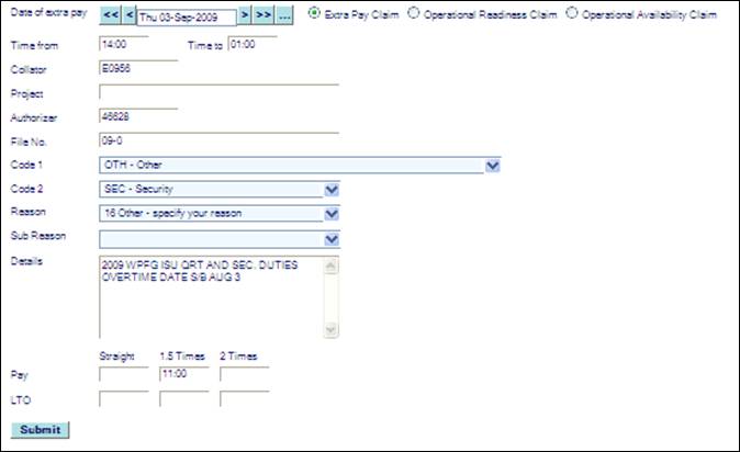 · Select Extra pay Claim, Operational Readiness Claim or Operational Availability Claim.