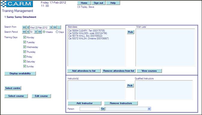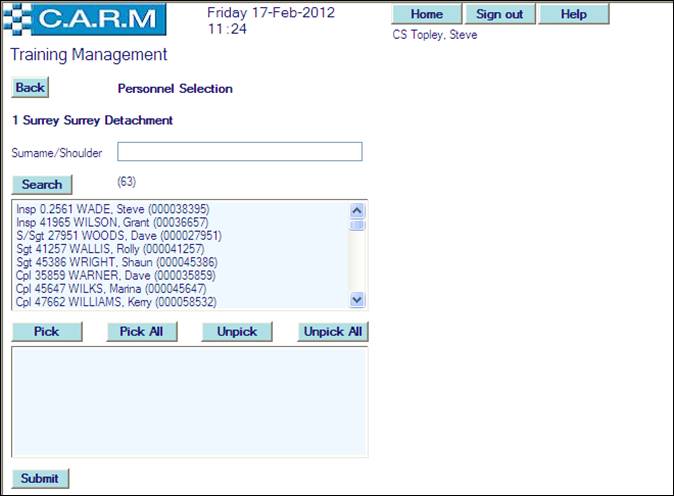 · Enter the shoulder number, surname or part followed by an asterisk (*).