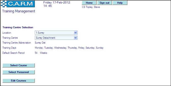 Before finding attendees availability or selecting a course, select the training centre to work with.