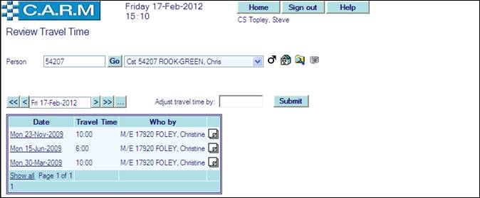 Enter travel dates and Adjust travel time by as appropriate (negative time is permitted to remove existing travel time)