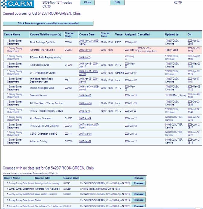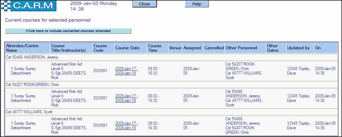 · To return to a complete grid, select Click here to include cancelled courses attended.