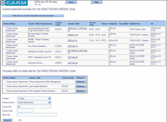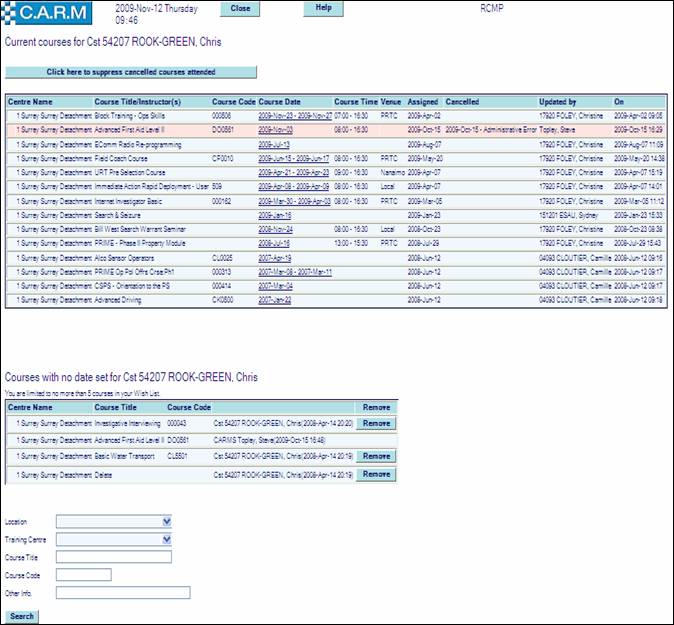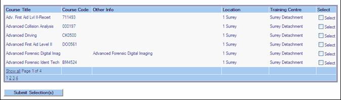 Select Show my training from the home page or from the Show My Full Details page or click on View Courses in the Training Management functions.